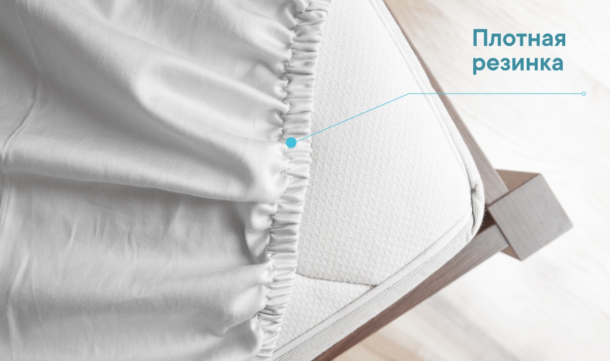 Благодаря удобной фиксирующей резинке по всему периметру, чехол полностью закрывает спальное место и боковины матраса.